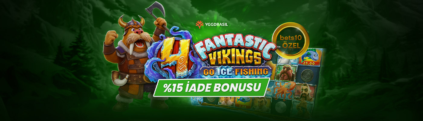 - İade Bonusu, kullanıcının kampanyaya katıldığı andan yukarıda belirtilen kampanya bitiş tarihine kadar 4 Fantastic Viking Go Ice Fishing slotunda oluşan net kayıpların %15 oranı olarak hesaplanır.